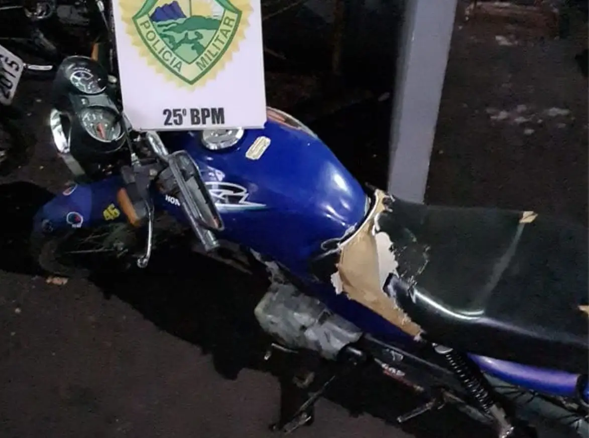 De acordo com informações do 25º Batalhão de Polícia Militar (25º BPM) por volta das 21h15 a equipes checou o emplacamento do veículo, que não condizia com as características da moto.