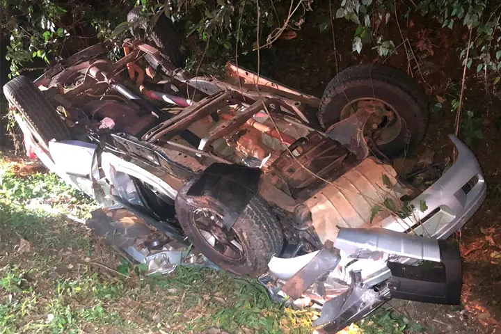 Motorista perde o controle e capota caminhonete na PR-323; três pessoas ficam feridas