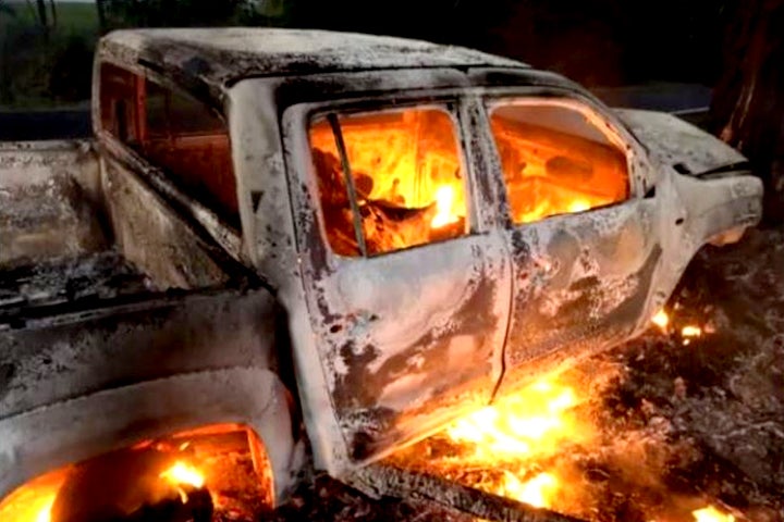 Aparentemente o incêndio aconteceu após uma colisão contra uma árvore.