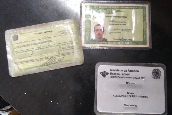 RG, CPF e título de eleitor estão em nome de Alexsander Farias Martins