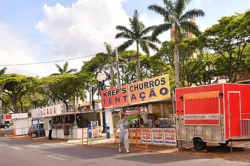 Seguindo os protocolos contra a covid-19, exigidos pela Vigilância, as barracas estão comercializando churros, pastéis, crepes, pão com linguiça, sonhos, cocada, salgados, crepes suíços e hambúrguer artesanal. Há também barraca com cactos, suculentas e arranjos florais.