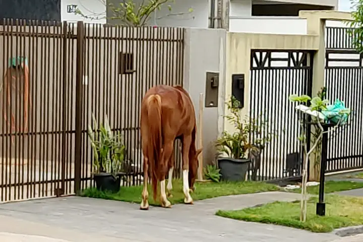 Nesta terça-feira (14) moradores do Jardim Belo Monte, em Umuarama, entraram em contato com a redação de OBemdito informando de uma situação que já ocorreu diversas vezes no local: cavalos soltos pelo bairro.