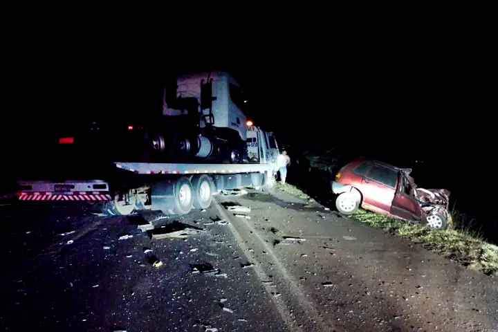 Os policiais se deslocaram até o local indicado. A PRE foi informada que o condutor do Fiat/Uno seguia sentido Perobal a Umuarama quando colidiu transversalmente com o caminhão, conduzido por M.P.O. de 39 anos, que trafegava em direção contrária.
