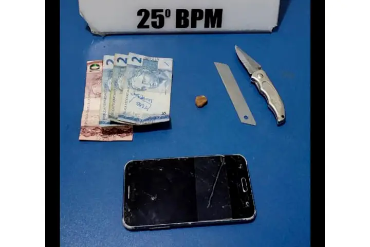 Com o suspeito os policiais também localizaram uma lâmina de estilete com resquícios do mesmo entorpecente e a quantia de R$ 16.