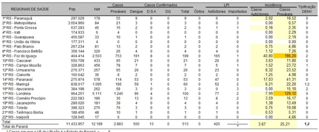 Secretaria Estadual registra mais 21 casos positivos de dengue no Paraná