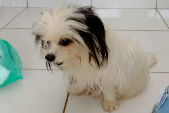 O Nanico tem três anos é branco e tem orelhinhas pretas. Ele é bem dócil e agora está novamente com a família.