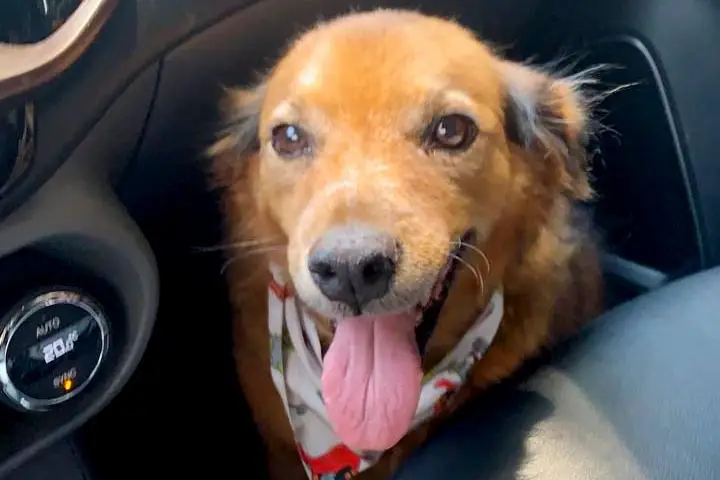 Ele é dócil e está usando coleira e lenço com temática natalina. Há recompensa para quem encontrar o animal.