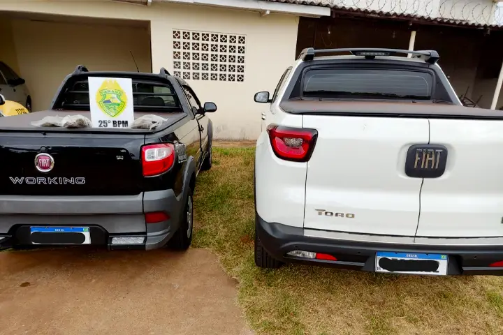 Ao chegar ao local, a equipe se deparou com dois veículos em condições irregulares, sendo uma Fiat Toro e uma Fiat Strada, esta com adulteração. Os carros, ambos de ano e modelo 2021, estavam equipados com radiocomunicadores, que permitiam acesso à frequência da polícia, que é restrita.