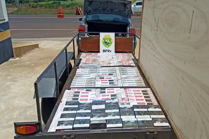 A Polícia Rodoviária Estadual (PRE) apreendeu uma carga de cigarros contrabandeados nesta sexta-feira (7), na rodovia PRC-272, município de Iporã. O condutor de um carro com placas de Umuarama tracionava uma carretinha com fundo falso, onde estavam escondidos os cigarros.