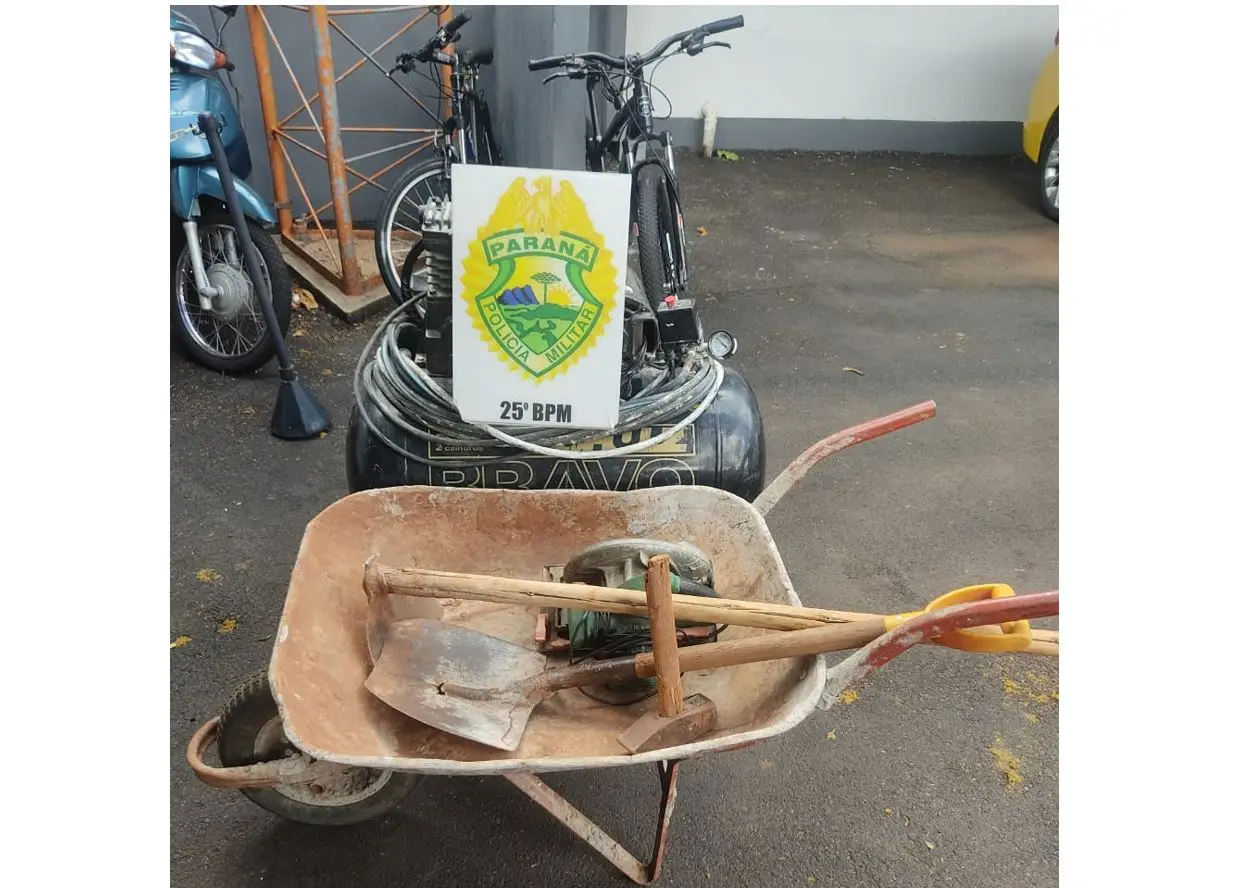 Com eles os policiais encontraram compressor, enxada, carriola, marreta, pá e uma serra elétrica. A dupla foi levada, junto com os objetos, para a sede da 7ª Subdivisão Policial (7ª SDP).