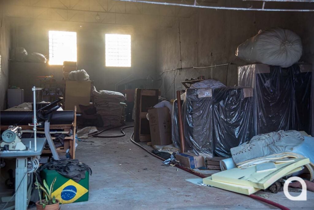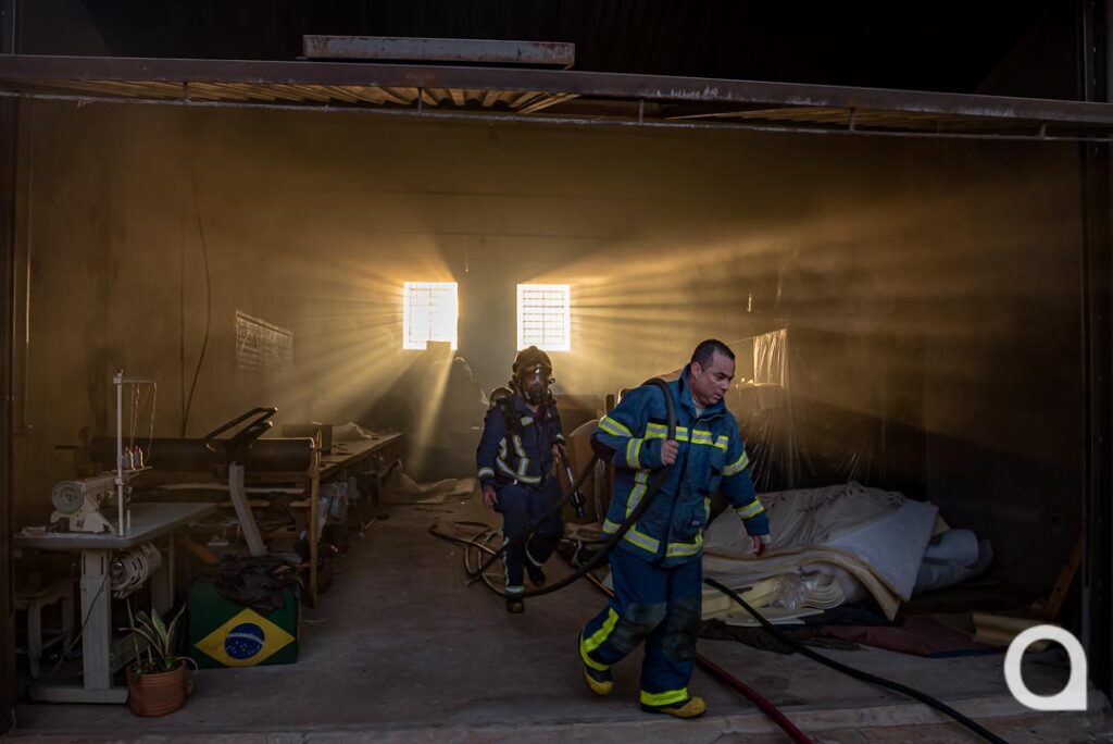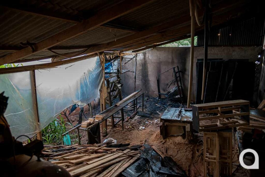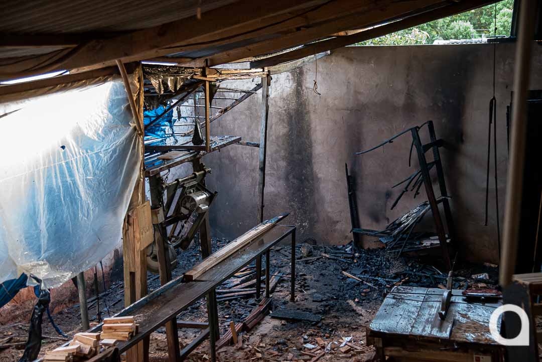 O fogo ficou contido em uma área nos fundos do barracão onde funciona a parte da serraria. Por isso, havia muito material inflamável, como madeira e serragem.