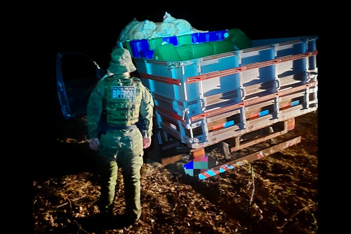 De acordo com informações repassadas pela unidade, as equipes do BPFRON e da Polícia Federal estavam em patrulhamento na área rural da cidade, quando avistaram um caminhão em atitude suspeita e tentaram fazer a abordagem.