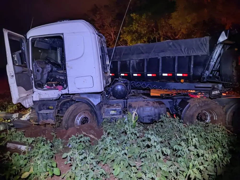 O acidente aconteceu no trecho de Cianorte, por volta das 21h20. O homem perdeu o controle, o caminhão se chocou contra a canaleta e o veículo parou em ‘L’.