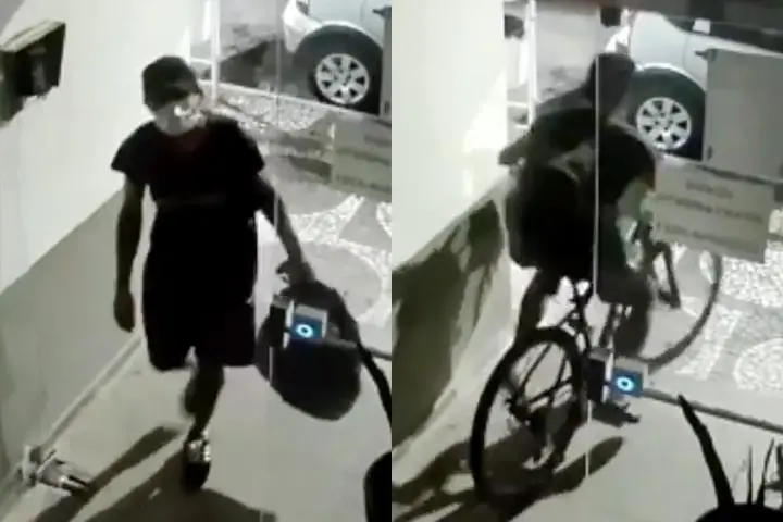 A dona da bicicleta solicitou para a síndica checar as imagens de circuito interno de monitoramento. Nos vídeos é possível ver o momento em que um homem entra no prédio e furta o veículo.