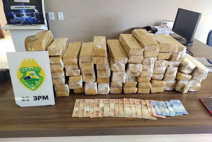 Duas mulheres de 19 anos foram presas em Umuarama após serem flagradas com 54,35 quilos de maconha na rodovia PR-323. A situação aconteceu por volta das 10h50 de sábado (15).