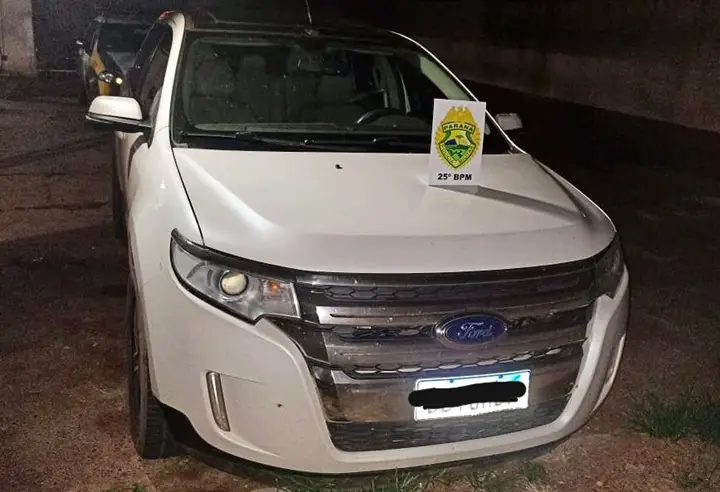 Os policiais foram até o local e encontraram o Ford Edge ligado e sem nenhum passageiro na zona rural. Os PMs checaram o sistema e verificaram se tratar do veículo foi roubado em Douradina na madrugada anterior.