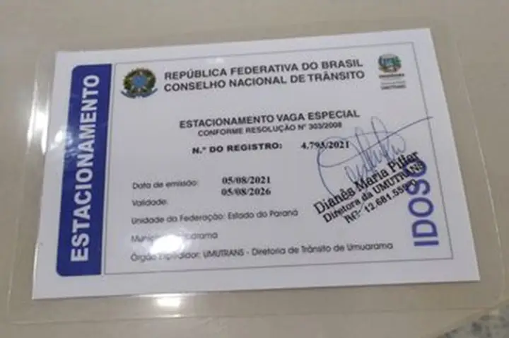 Cartão de estacionamento de idoso é encontrado no centro de Umuarama