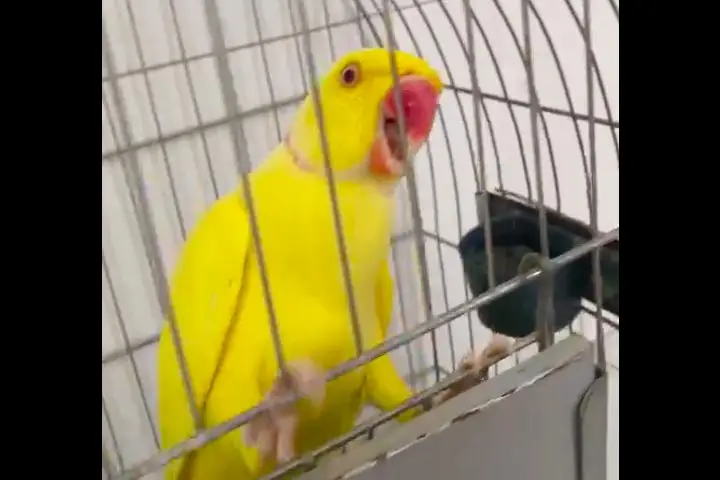 O passarinho está em uma gaiola e sendo bem cuidado. Quem tiver perdido um animalzinho desta natureza pode entrar em contato com Nathiele pelo telefone 44 984180822.