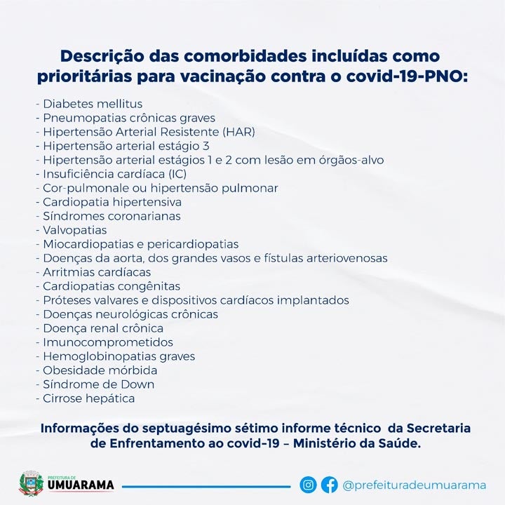 É necessário estar acompanhado dos pais ou responsáveis e apresentar atestado médico para deficiência permanente e comorbidades.
