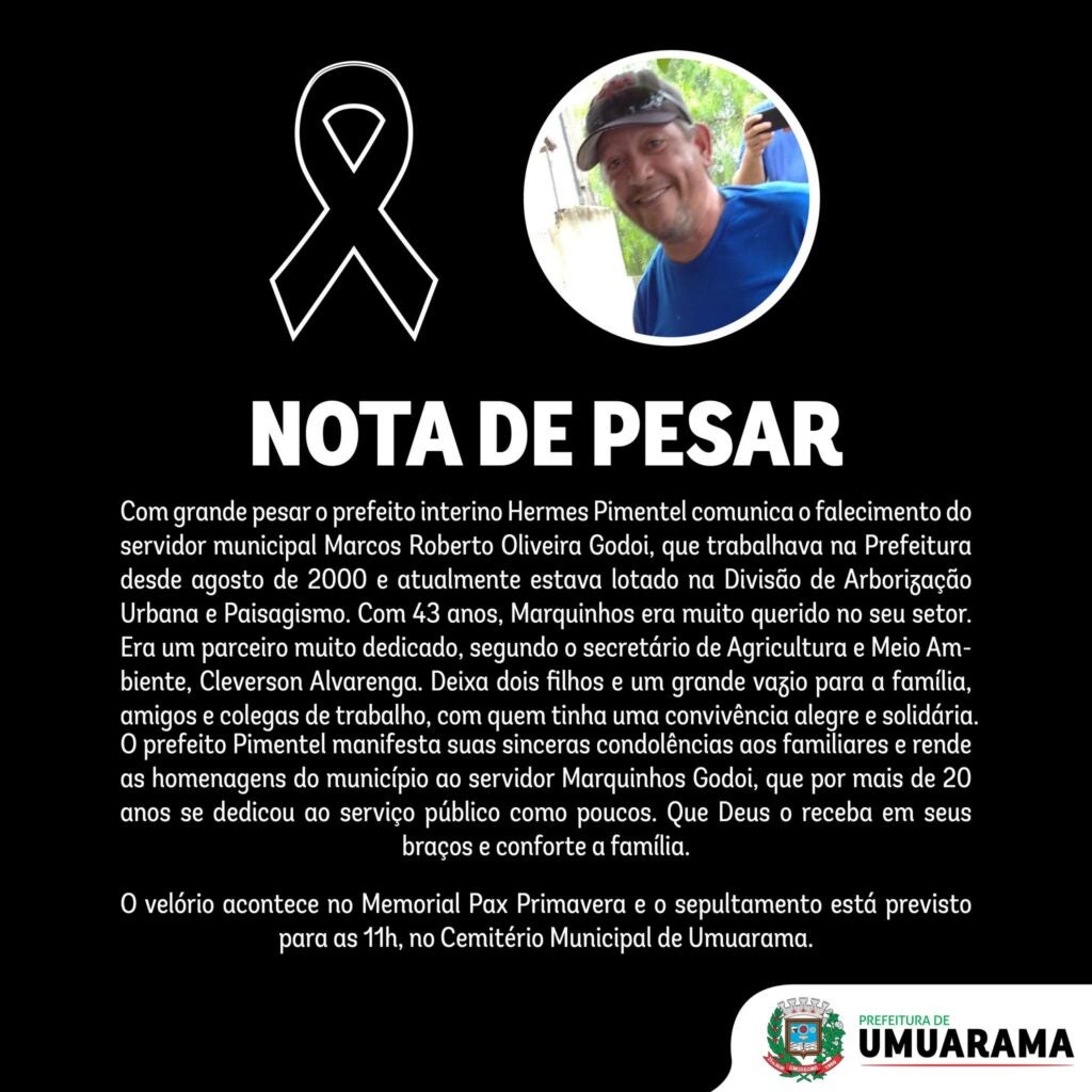 A Prefeitura de Umuarama divulgou uma nota de pesar em nome do prefeito interino Hermes Pimentel. Marquinhos trabalhava na Prefeitura desde agosto de 2000 e atualmente estava lotado na Divisão de Arborização Urbana e Paisagismo.