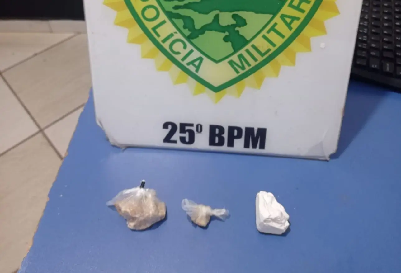 No local foram feitas buscas na área externa do imóvel, com autorização dos moradores, e os policiais encontraram crack e cocaína.