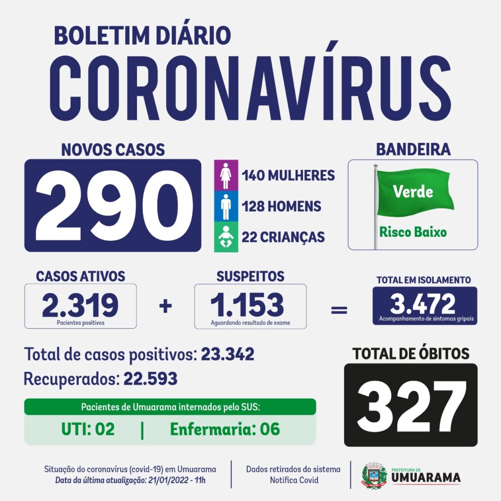 Os novos casos de covid continuam aumentando e colocam os profissionais de saúde em alerta. Nesta sexta-feira (21), mais 290 pessoas foram diagnosticadas com a doença, sendo 140 mulheres, 128 homens e 22 crianças. Não houve registro oficial de mortes e o total de óbitos está em 327.