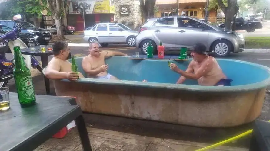 Cerca de 20 amigos estavam reunidos. Para que todos pudessem usufruir da piscina, o grupo fez revezamento. “Fizemos rodízio de quatro em quatro pessoas, para não dar aglomeração. Até porque é tudo mundo gordinho, não cabia mais que quatro na piscina [risos]. Era só para refrescar, não imaginávamos que teria tanta repercussão. Vamos mudar o nome do açougue para Resort Tuiuti”, brincou o empresário.