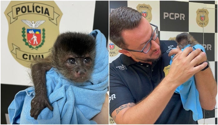 De acordo com o delegado Matheus Laiola, responsável pelo caso, o filhote tem poucas semanas de vida e foi tirado da natureza drasticamente. O macaquinho seria vendido por R$ 7 mil. Agora, resgatado, ele será levado ao Centro de Apoio à Fauna Silvestre (CAFS) de Curitiba.