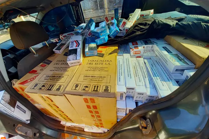 A equipe policial foi até o local, e o suspeito ao avistar a viatura policial empreendeu fuga por uma área de mata nos fundos da casa. Durante a checagem no veículo, foram encontradas aproximadamente 20 caixas de cigarros de origem paraguaia.