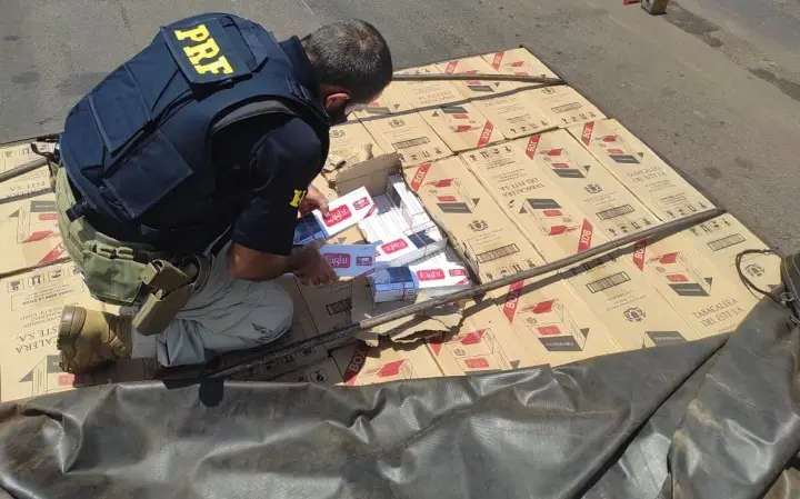 No compartimento de carga, a equipe PRF localizou 200 mil maços de cigarros contrabandeados do Paraguai, uma carga avaliada em mais de R$ 700 mil.