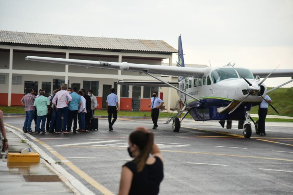 Confira aqui a chegada do avião no aeroporto de Umuarama.