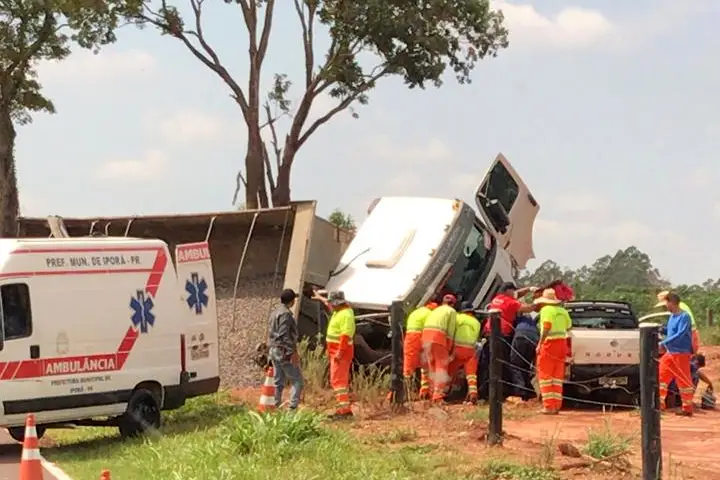 Um acidente entre um caminhão de uma empresa de terraplanagem e uma Saveiro foi registrado na manhã desta quarta-feira (26) em Iporã. A situação ocorreu na PR-490, km 35, entre Iporã e Altônia, nas proximidades do Rancho Cabral, por volta das 10h50.