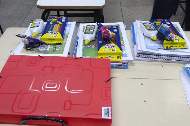 Podem ser doados para a campanha itens básicos como caderno, estojo, lápis, mochila, giz de cera, canetinha, borracha, cola e caneta, além de livros de literatura novos ou usados.