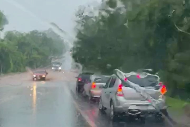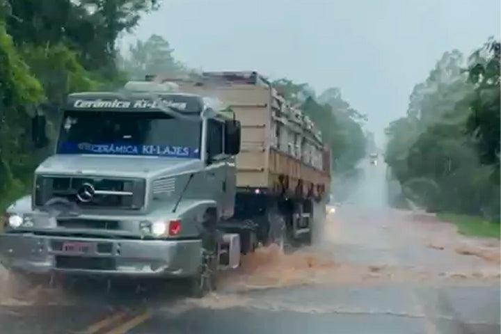 Muitos motoristas pararam no acostamento para esperar a chuva intensa passar. Outros se arriscaram e estavam trafegando em meio a enxurrada.