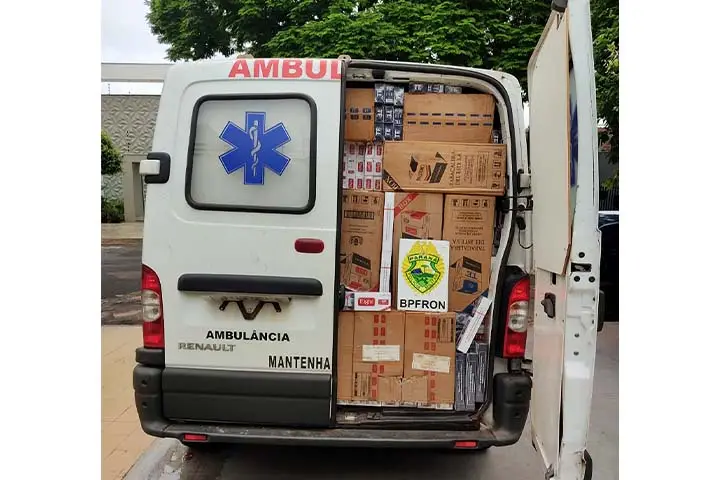 Policiais militares do BPFron (Batalhão de Polícia de Fronteira) apreendeu uma ambulância carregada com cigarros contrabandeados em Ivaté. A apreensão aconteceu nesta quarta-feira (2).