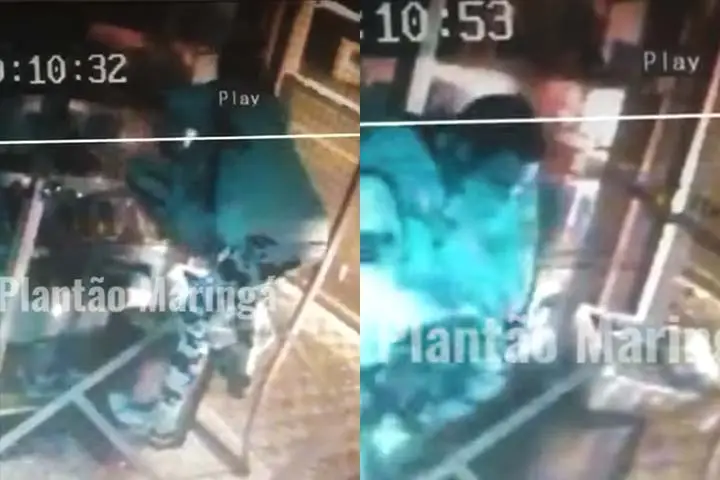 Na madrugada desta quinta-feira (3) bandidos estouraram a porta de uma loja de celulares, no centro de Marialva. Os bandidos aceleravam o carro e bateram contra a porta da frente do comércio. A ação foi filmada por câmeras de segurança.