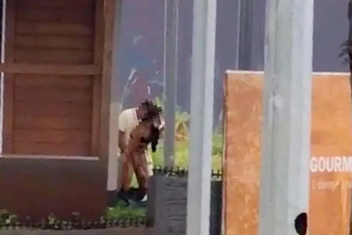 A dupla foi flagrada ao lado de um estabelecimento praticando o ato. A situação chamou a atenção de quem passava pela avenida.