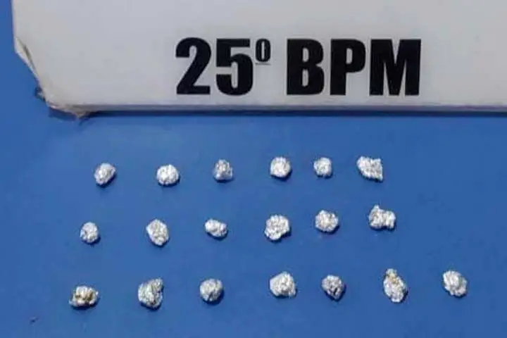 Em buscas pelo chão foram encontradas cinco pedras de crack e em outro ponto foram localizadas mais 14 pedras. Todas as frações estavam condicionadas da mesma forma.