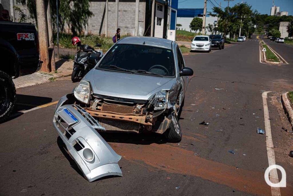 Uma forte colisão entre dois automóveis foi registrada na tarde desta sexta-feira (11) em Umuarama. O acidente ocorreu antes das 14h30 na esquina da Avenida Presidente Castelo Branco com a Rua Sofia Laderutski Biella, imediações do Jardim Vila Rica, perto do Colégio Geração Cima.