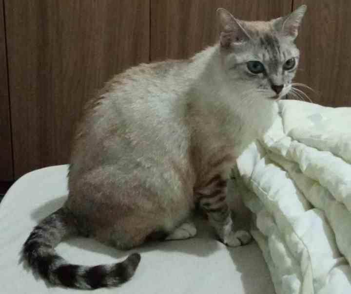 A gata tem 4 anos e é castrada. Ela é companheira dos filhos de Luciana, a Maria e 10 anos e o Gabriel de 14 anos. “Que estão super tristes”, disse.