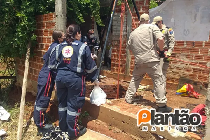 Uma mulher foi resgatada por Bombeiros e Samu após cair em uma fossa de seis metros de profundidade em Sarandi. O acidente foi registrado na tarde desta terça-feira (15), na Avenida São Paulo Apóstolo, no bairro Bom Pastor, em Sarandi.