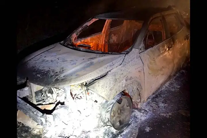 O carro destruído pelo fogo foi recolhido para o pátio da Delegacia de Polícia Civil (PC) em Iporã.