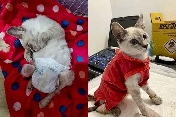 Segundo Rebeca, a gatinha também estava com lesões no ânus e na vulva. Tudo indica que o animal foi estuprado, que resultou na perda de movimentos nas pernas. A equipe veterinária está cuidando do tratamento do animal.