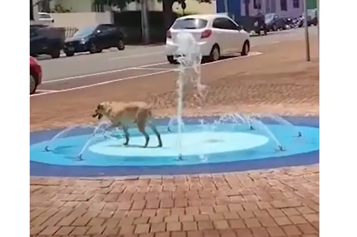 De acordo com Estela, ela estava parada em um semáforo na rua Prof. Erasto Gaertner, nas proximidades da praça da Prefeitura, onde o chafariz está localizado, quando percebeu a movimentação e resolveu filmar o cachorrinho. “Quando eu olho para o lado direito, ele estava lá, todo brincando. Eu achei o máximo”, conta.