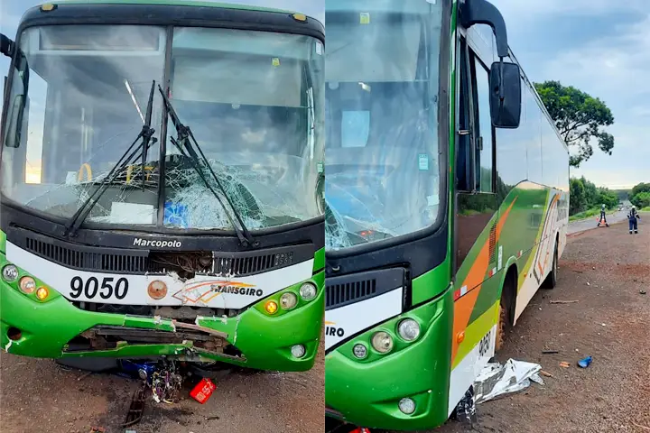 Um homem de 38 anos morreu em um grave acidente registrado na PR-488, no entroncamento da BR-227, em Céu Azul, na manhã desta segunda-feira (21). De acordo com a Polícia Rodoviária Estadual (PRE), uma batida frontal entre um ônibus e uma motocicleta matou uma pessoa.