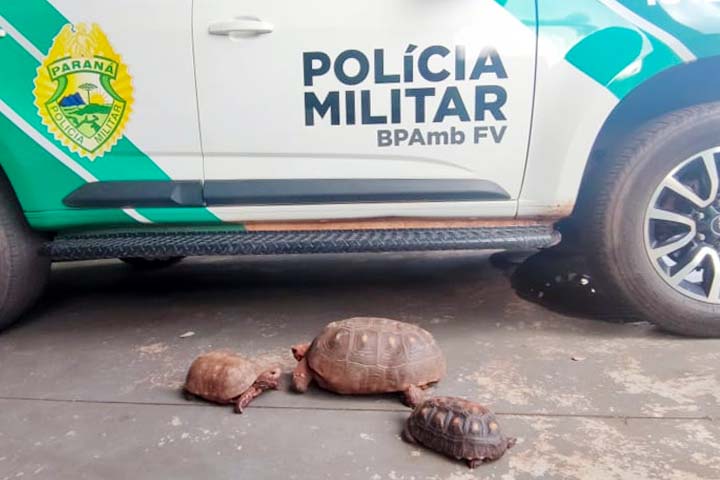 A Polícia Ambiental de Umuarama resgatou filhotes de jabutis que supostamente estavam sendo comercializados em Cruzeiro do Oeste. Conforme os policiais, a equipe recebeu uma denúncia anônima nesta quinta-feira (24) informando que estava ocorrendo a venda dos jabutis filhotes.
