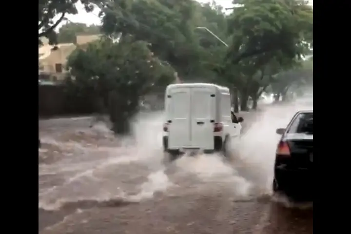 O Pabullo B. Pajonoti também registrou a chuva, na avenida Portugal, perto da Apae. Confira o vídeo abaixo: