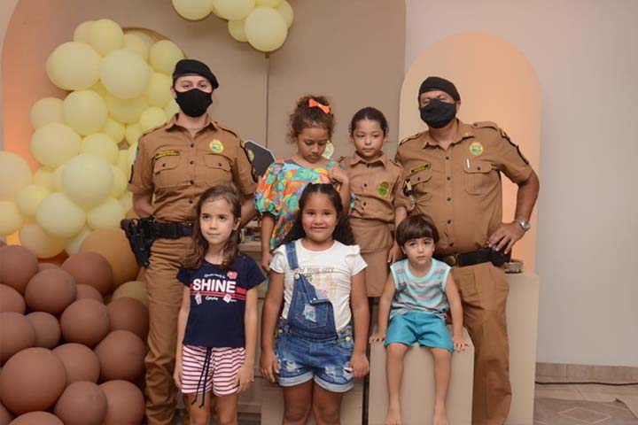 Fã da PM, menina de 5 anos recebe policiais em festa de aniversário em Umuarama