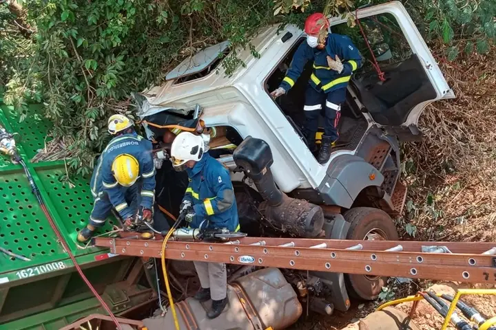 De acordo com informações prestadas pelos bombeiros, o motorista, de 51 anos, estava preso dentro da cabine do veículo, e acabou sofrendo uma lesão na coluna. A equipe do Samu compareceu ao local e prestou atendimento, estabilizando a situação do condutor.