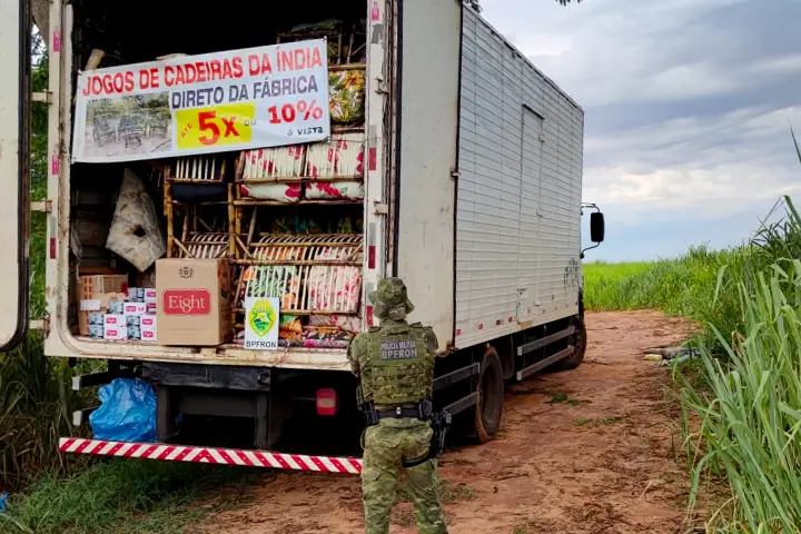 De acordo com a polícia, o caminhão branco estava abandonado na estrada rural. Durante a vistoria constatou que havia um carregamento de cadeiras de bambu e ao fundo da carga encontravam-se uma carga de cigarros estrangeiros.